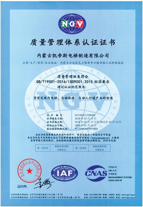 內(nèi)蒙古凱帝斯電梯制造有限公司本著“以人為本、用戶至上誠信守則、質(zhì)量興企”的企業(yè)精神及經(jīng)營理念,多年來積極創(chuàng)新,努力創(chuàng)建完善的質(zhì)量管理體系,提升產(chǎn)品在客戶中的美譽(yù)度及知名度。目前我公司所生產(chǎn)的各類電梯產(chǎn)品以合理的價(jià)位、高效穩(wěn)定的工作性能,完善的售后服務(wù),在用戶中取得一致好評(píng),客戶遍及全國各地。